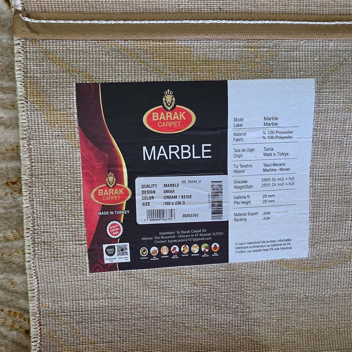 Bine ați venit în universul covoarelor din Colecția Marble, unde vă întâmpină un covor de interior excepțional ce aduce confort suprem și estetică impecabilă în orice încăpere. Compoziția sa, realizată din 100% poliester, conferă o senzație plăcută la atingere și la pas, oferind o serie de proprietăți avansate și benefice atât pentru dumneavoastră, cât și pentru locuința dumneavoastră.